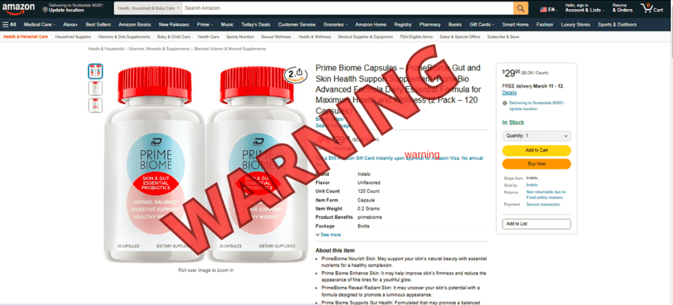 Well, a very important warning that I think is important to mention here is about the number of people who are being deceived when ordering the PrimeBiome, supplement because they are not using the official website to buy it.